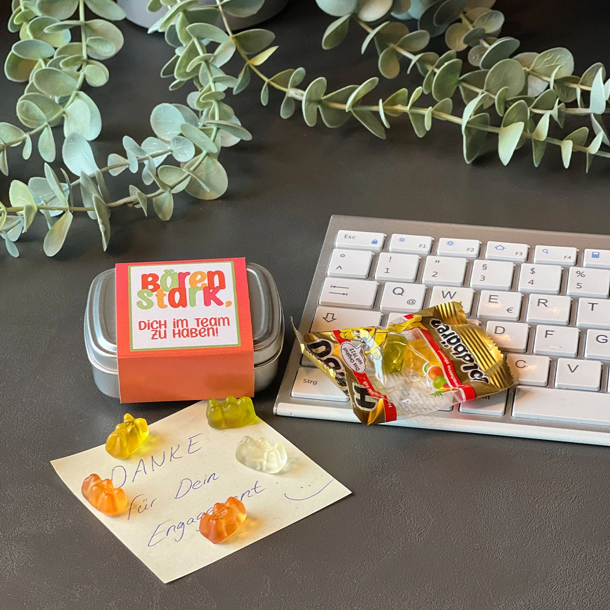 Haribo macht Kinder froh und Mitarbeiter ebenso! Umso mehr, wenn die Goldbären in einer hochwertigen Dose mit der anerkennenden Botschaft: „Bärenstark, Dich im Team zu haben!“ überreicht werden.