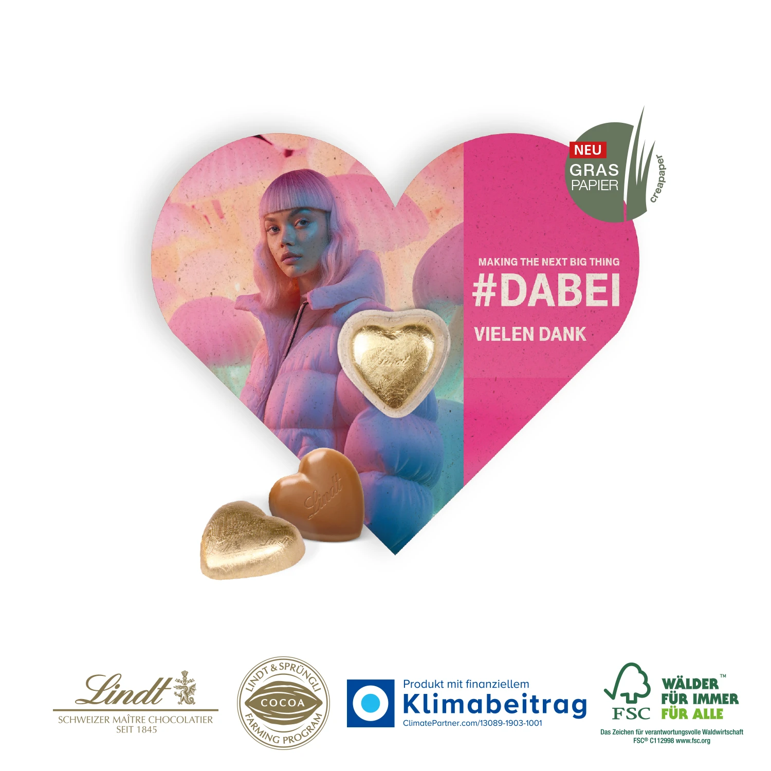 • Stilvolle Schokokarte mit Herzdesign, ideal als kleines Präsent für Geschäftspartner oder Kollegen.