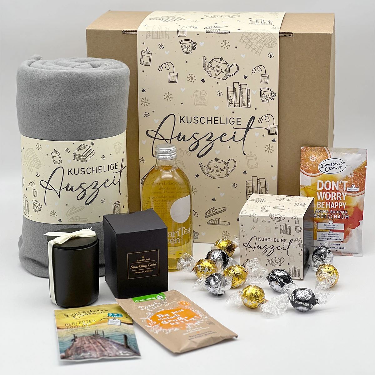 - 1x Hochwertige Wolldecke mit Banderole „Kuschelige Auszeit“
